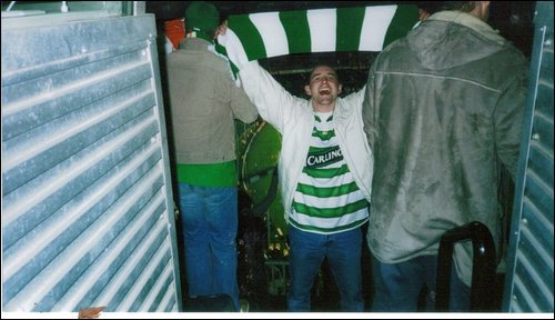 The bus was full of the Celtic faithful, on a hopeful voyage Ready to rock, and rumble, and participate in carnage From discussions that we had most were on a sticky wicket In the sense that for the match they were missing a ticket We were realistic, appreciative it would be difficult to achieve Frannys Manchester family were still trying, left us clinging to belief