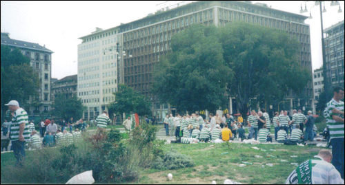Went out that evening resolved to make our presence felt To show the Milanese locals how proud we are to be Celts Having fun whilst still behaving even though tanking our liver Unlike Scotlands shame, or rivals just across the river Can’t take them anywhere, they’ll leave the place in a mess Invariably reported the next day, splashed all across the press