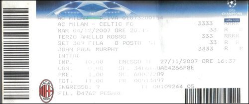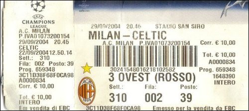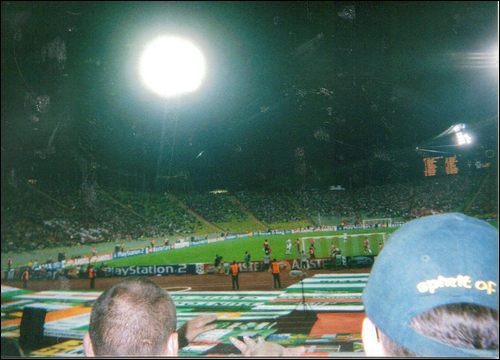 The game against Milan at Parkhead was one for the history books A last minute goal from Skippy gave us the win, the ground shook Some nutjob ran on the park, giving poor Dida a slap Went down like a ton of bricks in an embarrassing flap We taken the scalp of the European Champions A day in our history that you could only describe as halcyon